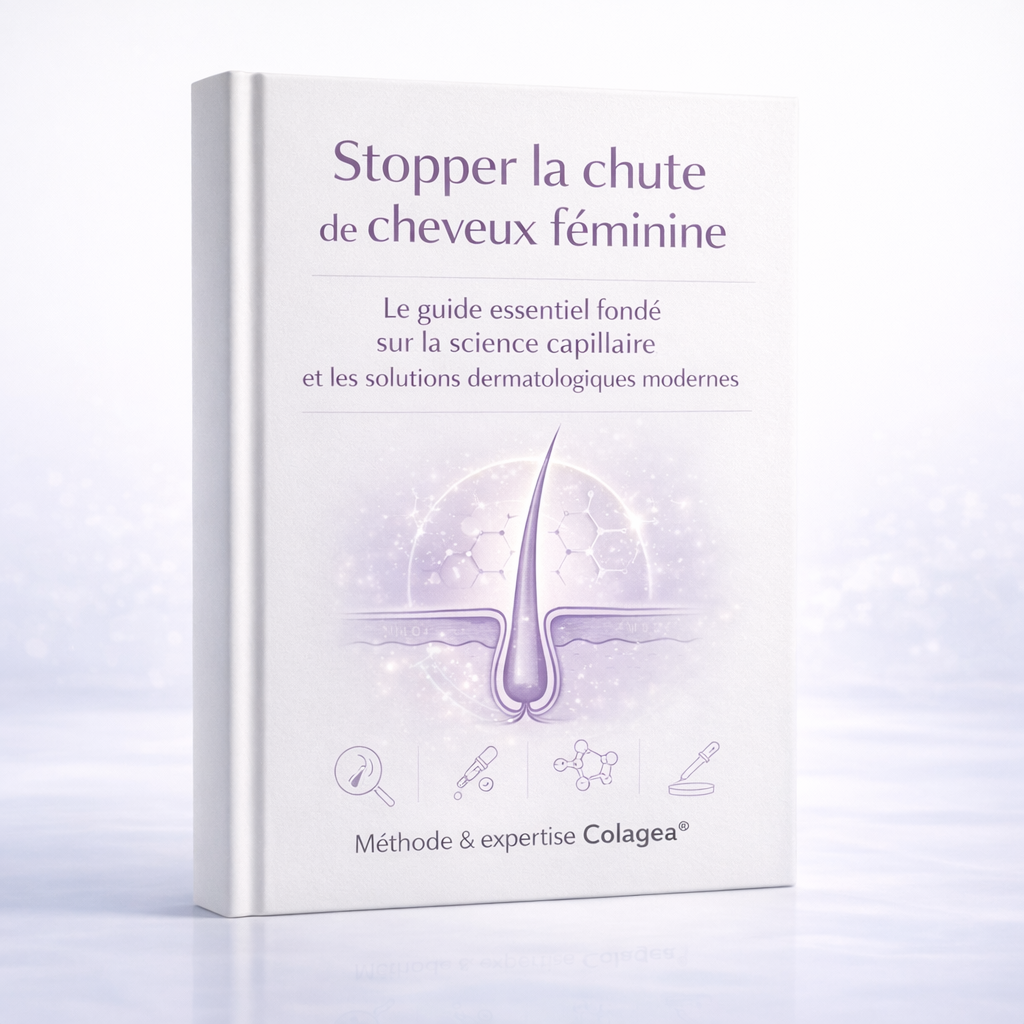Le minoxidil agit principalement en stimulant la circulation, mais son action reste limitée et souvent irritante pour le cuir chevelu.Colagea® s’appuie sur une approche plus ciblée et physiologique, combinant peptides biomimétiques (Copper Tripeptide-1, Acetyl Tetrapeptide-3), extraits végétaux cliniquement étudiés (Serenoa serrulata, Cucurbita pepo, Rosmarinus officinalis) et acides hyaluroniques pour restaurer les conditions naturelles de croissance du cheveu.Non médicamenteux et bien toléré, le protocole Colagea® agit sans effet rebond ni irritation, pour des résultats visibles et durables.